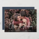 Um cartão de data moderno, projetado para acomodar sua foto favorita de noivado de sangramento horizontal ou orientada a paisagem. "Salve a data" aparece perto do fundo da sua foto em letras brancas manuscritas, com seus nomes, data do casamento e local do casamento embaixo. Cartões postais inversos para mostrar detalhes adicionais de data.