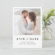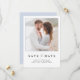 Envie seus anúncios de noivado em estilo com este casamento simples, moderno e elegante Salve a Data, com a moderna tipografia de script com letra de mão, aliada a fontes elegantes de serifa. Sua foto de noivado favorita apresenta destaque e tem uma borda delicada em azul claro. A parte de trás do convite apresenta uma textura azul bonito e clara, e seu site de casamento, informando aos convidados que o convite formal de casamento será seguido. Copyright Anastasia Surridge, todos os direitos reservados.