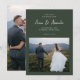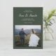 Este simples e chico casamento verde da floresta fotográfica, salvar o anúncio da data, apresenta um design moderno minimalista com tipografia clássica e bonito escrita escrita escrita escrita escrita. Compre esta elegante coleção de casamento para coordenar convites de casamento e opções adicionais de cores de tendências.