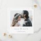 Este simples casamento de fotos quadrado chic salve a modelo do cartão de data com uma design elegante, minimalista e moderna. Procure por versões deste design em formato retangular em formatos de cartão plano, cartão postal e ímã em várias cores! A frente apresenta seus primeiros nomes sob sua foto favorita e uma mensagem 'save the date' veiculada com uma combinação impressionante de duas fontes distintas, com 'the' em um guião luminoso e fluente entre o resto da mensagem, que é, em cima, com uma aparência formal arrojada e nítida. Este elemento design está incluído em ambos os lados e não pode ser alterado, embora você possa optar por excluí-lo no verso para uma aparência ainda mais simples. O texto 'Salvar a Data' na frente é uma elegante sombra escura de verde, e está em preto no verso. E no verso você pode, claro, além de substituir nossas informações de exemplo por suas próprias, excluir campos de texto que você não precisa, ou mudar o texto, bem como mudar a fonte, o tamanho e a cor. A cor padrão do texto de seus nomes na frente é preto, e o texto na parte traseira é uma mistura de preto e ligeiramente suavizado. A cor de fundo padrão em ambos os lados é definida como transparente, para permitir que a cor do papel sirva simplesmente como tom base. Mas você pode editar isso e mudar a aparência de um ou de ambos os lados nesse aspecto, bem como para se adequar ao seu estilo. Personalize este casamento elegante e minimalista, salve o modelo de cartão plano com as ferramentas intuitivas de edição do zazzle, a sua foto favorita e a sua inspiração e torne-a exclusivamente sua!