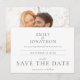 Cinza Moderna Escrevendo Foto Casamento Salve a Data. Disponível digitalmente e impresso. Um design totalmente personalizável.