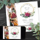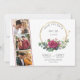 Casamento de rosa vermelha, guarde a data com 3 fotos personalizadas, rosas vermelhas de aquarela, folhas de eucalipto e um quadro redondo geométrico dourado. O modelo está pronto para você adicionar seus detalhes da data do casamento da frente, assim como as iniciais da noiva e do monograma no verso. Tema floral botânico com tipografia simples e elegância moderna.