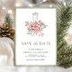 Incêndio aos seus convidados com esta elegante, exceto a data com lindas flores vermelhas da poinsettia e buquê com velas brancas e Código QR para o website do casamento. Basta adicionar os detalhes do seu evento neste modelo fácil de usar e enfeitar este cartão com as suas fotos favoritas para torná-lo um cartão de data única.