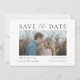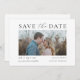Este cartão de data de gravação moderno apresenta um modelo de foto personalizável na frente, permitindo que você mostre sua foto favorita. O script elegante e as fontes serif adicionam um toque de sofisticação ao design. Perfeito por anunciar seu dia especial com estilo e graça!