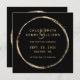 Esta opção para salvar o convite de data apresenta uma imagem falsa em círculo dourado sobre um fundo preto e uma fotografia no verso.