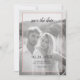 Com aspecto de ouro rosa, salve o cartão de data para casamentos com quatro (4) fotos (cor/preto e branco) e uma camada transparente branca com borda de efeito brilhante rosa. Fácil de personalizar com suas imagens e texto. ==> 1- Se você quiser usar o "convite formal para seguir", com alternâncias, copie este texto e os quadrados: convite formal para o follo 2- Use os filtros da ferramenta design do Zazzle para transformar suas fotos coloridas em preto e branco. NOTA: NENHUMA GELA REAL ESTÁ INCLUÍDA.