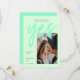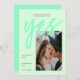 Um moderno Cartão Guardar a Data com uma nova paleta de cor néon de verde-menta, com um grande e negrito Script de Caligrafia para Sim e sua imagem de escolha. Todas as cores desta Modelo de Salvar Foto podem ser alteradas! Um barato exclusivo, mas Salve o Convite de Data para casais modernos.