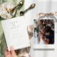 Script de Caligrafia Formal no Casamento Verde de Sage Salve o Cartão de Data com foto no verso.