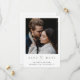 Este simples casamento de fotos em chic salve a data da modelo de carta lisa apresenta uma design elegante, minimalista e moderna. A frente apresenta seus primeiros nomes, data e localidade de casamento sob sua foto favorita e uma mensagem 'salve a data' em um tom elegante e escuro de verde, veiculado com uma combinação impressionante de duas fontes distintas, com 'o' em um roteiro claro e fluente entre o resto da mensagem, que é em cima com uma aparência formal ousada e nítida. Este elemento design 'Salvar a Data' está incluído em ambos os lados e não pode ser alterado, embora você possa optar por excluí-lo no verso para uma aparência ainda mais simples. E no verso você pode, claro, além de substituir nossas informações de exemplo por suas próprias, excluir campos de texto que você não precisa, ou mudar o texto, bem como mudar a fonte, o tamanho e a cor. A cor padrão dos nomes, data e local do texto na frente, assim como o texto na parte traseira, é preto. A cor de fundo padrão em ambos os lados é definida como transparente, para permitir que a cor do papel sirva simplesmente como tom base. Mas você pode editar isso e mudar a aparência de um ou de ambos os lados nesse aspecto, bem como para se adequar ao seu estilo. Personalize este casamento elegante e minimalista, salve o modelo de cartão plano com sua foto e sua inspiração e torne-o exclusivo seu. E por favor, verifique nossa loja variações desta design, incluindo uma versão mais minimalista sem a data e a localização na frente!