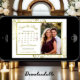 Estes cartões salve a data vão avisar seus amigos e família sobre seu próximo casamento. Eles apresentam um elegante design de ouro e branco com sua foto em um ouro falso e caramujos delicados nos cantos. Há espaço para um calendário personalizável do seu mês de casamento com um coração à volta do seu dia especial. Rico, na moda, posh e glam, estas cartas são uma maneira maravilhosa de começar a sua viagem de casamento com classe e estilo.