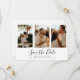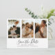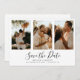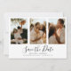 Simples Casamento de Foto Minimalista Elegante Salve a Data. Personalize facilmente este convite moderno, formal, preto e branco, substituindo cada informação pela sua. A tipografia do roteiro de caligrafia é tão chique e certamente uma marca para os próximos anos. Faça o upload de uma foto vertical/retrato. Verifique a visualização antes de adicionar este convite tradicional ao carrinho!