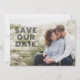 Texto preto de deco de arte geométrica sobre um casamento com fotos de noivado, salve a data. A parte traseira apresenta informações minimalistas com um Código QR no site na parte traseira (embora possa ser apagado) com um fundo branco clássico e texto preto. O estilo de fonte apresenta um modo de stripes com formas e linhas geométricas em negrito. As cores de fonte e de fundo são totalmente personalizáveis.
