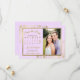 Estes cartões salve a data vão avisar seus amigos e família sobre seu próximo casamento. Eles apresentam um elegante design púrpura pálida ou lilás e ouro com sua foto em um ouro faux foil frame e delicados caracóis e espirais nos cantos. Há espaço para um calendário personalizável do seu mês de casamento com um coração à volta do seu dia especial. Rico, na moda, posh e glam, estas cartas são uma maneira maravilhosa de começar a sua viagem de casamento com classe e estilo.