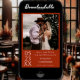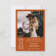 Este casamento, exceto o cartão de data, é moderno, minimalista e simples, mas elegante. Ele mostra uma foto quadrada em um fundo laranja ferrugem com sua data de casamento expressa artisticamente em números verticais. Excelente maneira de deixar seus amigos e família saberem marcar seus calendários para seu próximo casamento.