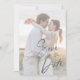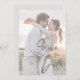 Entre no reino da elegância com o nosso casamento de fotos modernas do Script Elegante Salve os cartões de data. Criados com uma fusão de tipografia de eternos e elementos de design contemporâneos, estas cartas oferecem um vislumbre da sofisticação de suas celebrações futuras. Capture a essência da sua história de amor com a opção de incluir uma fotografia querida. Quer seja um momento fantoche ou um retrato posfático, a sua imagem escolhida vai ficar no palco central, acrescentando um toque pessoal aos seus Cartões salve a data e permitindo que as suas personalidades brilhem. A foto tem uma cobertura opaca para permitir o design de tipografia a pop. Personalize a parte de trás do cartão com os detalhes do seu casamento. Escolha nosso casamento de fotos modernas com o Elegante Script Salve os cartões de data e embarca na viagem para o seu casamento de sonho em estilo.