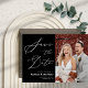 Foto Moderna de Script Elegante Preto e Branco Simples Casamento Salva o Cartão de Convite de Data. Avise sua família, amigos e colegas que você marcou uma data para sua celebração de casamento com este casamento elegante, na moda e moderno, salve o cartão de convite. Todos os textos estão pré-organizados para que você personalize fácil e rapidamente com seus próprios detalhes.