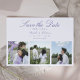 Capture a atenção dos seus convidados com esta opção para salvar o cartão de data, com um modelo de na moda 3 fotos. Este design elegante combina lindamente suas fotos pessoais com o roteiro de chic e fontes de serifa, criando um anúncio memorável para seu próximo dia de casamento. Com espaço para suas imagens e detalhes de eventos, este cartão permite que você compartilhe o entusiasmo de sua celebração em um estilo elegante e moderno!