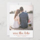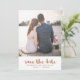 Casamento simples e chic salve o cartão de data apresenta um bonito impressão de bolinhas castanho e branco com tipografia de pincel. Simplesmente adicione seus nomes e sua foto favorita para tornar este design clássico seu.