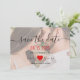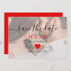 Escrito de caligrafia moderno, casamento simples, minimalista, chic, salve o convite de data com foto e coração vermelho.