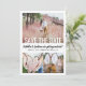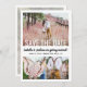 Anuncie a alegre notícia do seu noivado e do próximo casamento com fotos personalizadas únicas, salve os convites de data. As 4 fotos e toda a redação deste modelo são simples de personalizar. (DICA DE IMAGEM: Uma maneira fácil de centralizar uma foto exatamente como você deseja é recortá-la antes de carregá-la no site do Zazzle.) O design a preto e branco apresenta quatro imagens do casal engajado, caligrafia com script manuscrito na moda e moderna tipografia minimalista moderna. Esta única nota de anúncio é uma maneira elegante de informar amigos e familiares sobre a sua próxima celebração especial. Parabéns para a noiva e o noivo!