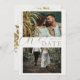 Um casamento elegante salve a data com modelos para duas fotos, com uma pintura aquosa de borboletas de ouro e borboletas de ouro (este é um efeito digital). Um belo convite de casamento elegante para um primavera, verão ou casamento outono, um casamento de borboletas, um casamento de jardim ou um casamento no qual a natureza tem um papel importante.