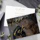 O romântico casamento preto de ouro chico elegante salve a data modelo de cartão horizontal com sua foto de sobreposição desbotada e personalizada em trendy moody escuro transparente com um roteiro de caligrafia branco clássico. ++++++++++ Fácil de personalizar com seus detalhes e imagem de noivado em ambos os lados! +++++++++ Adequado para qualquer tema de casamento elegante de estação.