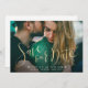 Moderno salve o script de data em cores falsas em folha de ouro, com foto de casal, simples e elegante. cartões salve a data de excelente para casamento vintage, casamento formal e outros eventos. Selecione "Clique para personalizar mais" na seção "Personalizar este modelo" para ajustar a posição e o tamanho da sua foto.