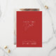 Anuncie seu dia especial com nosso Casamento de Foto Simples e Simples Crimson Red Crimson Salve a Data. Esta elegante e moderna design combina o chic clássico com um guião branco limpo, num fundo vermelho impressionante, perfeito para a celebração da na moda. Preencha seu pacote com as placas "Salvar a Data", as placas RSVP e as notas "Obrigado", cada uma projetada para manter a mesma simplicidade sofisticada. Personalize o seu convite com uma fotografia para criar um eterno para os seus convidados.