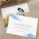 Foto de casamento simples moderna, salve o cartão. Perfeito para um simples casamento azul e branco. Edite esta opção para salvar o cartão de data com seus próprios nomes e data de casamento em um lado e sua própria foto no sentido inverso. Outros itens correspondentes e opções de cor estão disponíveis. Tiras de arte modernas originais e design por Sarah Trett para www.mylittleedenweddings.com