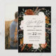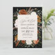 Foto de casamento floral de aquarela russa, salve o convite de encontro. Com belas ferrugem, terracota, cor-de-rosa pincelada, preta e verde-sábio, os detalhes da aquarela de eucalipto. Este convite de casamento moderno certamente define o estilo para o seu grande dia.