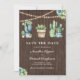 Incêndio aos seus convidados com esta elegante, exceto a data com belos potes suculentos e a tipografia moderna. Basta adicionar os detalhes do seu evento neste modelo fácil de usar e enfeitar este cartão com a sua foto favorita para torná-lo um cartão de data única.