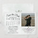 Este belo casamento Salvem o Cartão de Datas apresenta um design bócio rústico com letras elegantes de escrita e um aglomerado de folhas de cor d'água pintadas à mão e flores de lavanda em tons de verde-sábio e roxo claro. Há um calendário personalizável com um coração à volta da data do seu casamento, juntamente com o espaço para a sua foto, o nome do casal e a localização do casamento. Elegante, na moda e chic, este cartão é uma forma excelente de deixar seus amigos e família saberem salvar a data do seu dia especial.
