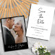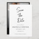 Anuncie seu casamento em estilo eterno com este roteiro minimalista, preto e branco, salve o cartão de data. Apresentando uma foto de hemorragia de cheio, tipografia limpa e um roteiro romântico de caligrafia manuscrita, esta design moderna é perfeita para casais que adoram simplicidade elegante. A paleta de cores monocromáticas e o layout minimalista criam um aspecto sofisticado e na moda, ideal para casamentos nas cidades, eventos formais ou comemorações românticas modernas.