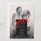Torne o seu anúncio de casamento memorável e na moda com este chic, salve o cartão de casamento com um minimalista design vermelho, preto e branco, complementado por um roteiro vermelho e branco impressionante. Com uma bela foto do casal feliz na frente e um simples fundo preto nas costas, é a canvas perfeita para personalização. Personalize o texto e a foto para criar a sua elegante moderna salve o cartão de data, disponível nos formatos de impressão e download digital.