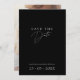 Anuncie seu dia especial com nosso Casamento de Foto Simples de Script Negro Minimalista Salve a Data. Esta elegante e moderna design combina o chic clássico com um guião preto limpo, perfeito para a sua celebração de na moda. Preencha seu pacote com as placas "Salvar a Data", as placas RSVP e as notas "Obrigado", cada uma projetada para manter a mesma simplicidade sofisticada. Personalize o seu convite com uma fotografia para criar um eterno para os seus convidados.