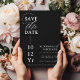 Este elegante e simples casamento da tipografia moderna, a preto e branco, salva a data, mostra uma foto de cobrir de herói com nomes de noiva e noivo, um roteiro "e" em branco e soletrado, com a sobreposição da data do casamento, junto com a gravação da metade do círculo e dos detalhes modernos da design, incluindo o site de casamento, atrás de um belo e sólido fundo negro. Personalize o texto do seu grande dia, carregue facilmente sua foto! Você pode até editar / ajustar a posição dos componentes do design ou alterar algumas cores ainda mais, clicando no botão azul "Editar usando a ferramenta design" na parte inferior da janela "Personalizar", navegue até a guia "camadas" na coluna esquerda da tela de edição, selecione a camada frontal ou traseira, clique no elemento que você gostaria de mudar e torne-o seu próprio documento (Personalizar pedido e perguntas são sempre bem-vindas) - clique no botão "mensagem" ou email figandlilyco@gmail.com. A foto é apenas para fins de espaço reservado e deve ser substituída. Design é carinhosamente criada por Fig e Lily Studios, e foto-crédito do noivado/casamento de nossa linda filha: @laurenmargaretphotoographic