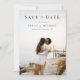 Crie seu próprio casamento, salve os cartões de data com design de tipografia moderna simples e uma de suas fotos favoritas.