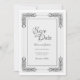 Um elegante ornamentado de cinza prateado, casamento Salva-a-Data.