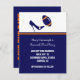 Casamento divertido de futebol Salve o anúncio feito em azul escuro, laranja e branco. Gráficos de um estileta azul alto chutando um futebol azul e laranja decoram a parte superior branca do cartão. A parte inferior do cartão é feita em azul escuro com uma faixa laranja perto do topo, e texto branco personalizado pronto para personalizar com as informações do casamento. Uma parte de trás azul tem texto laranja sendo executado lateralmente lendo Salvar a data. Excelente Salve os anúncios de data para o casal do fã de futebol.