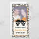 Casamento laranja no Halloween Salve o cartão com fotos da Data, com noiva e noiva de casal do crânio preto no fundo do marfim e uma borda do padrão do crânio. O noivo veste um chapéu laranja e a noiva um arco laranja.