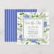 Este cartão de aviso prévio de casamento com hortênsias azuis é perfeito para informar aos convidados que reservem a data do seu casamento. Com suas hortênsias azuis multicoloridas em aquarela, folhagens naturais e parte de trás listrada de azul, é ideal para compartilhar sua alegria e emoção com amigos e familiares. Todos estarão ansiosos para se juntar a você na celebração do seu casamento!