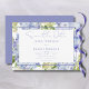 Este design apresenta flores azuis e brancas de hydrangea, de cor aquática, com uma fina estrutura de periwinkle em torno de um centro branco. A parte traseira está disponível em um design inteiro das hydrangeas ou em um azul de periwinkle sólido. Este cartão faz parte do Periwinkle Blue & White Hydrangea Flowers Wedding Suite de cartas criadas pela imprensa simplesmente de farmácia.