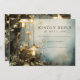 Névoa da floresta etérea e árvores com lanternas em forma de cogumelo penduradas destacadas neste casamento, exceto o anúncio da data, em matizes de floresta de cinzas azuis profundas, e névoa. Éreal e místico.