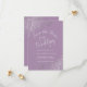 Estes cartões salve a data vão avisar seus amigos e família sobre seu próximo casamento. Eles apresentam um elegante design roxo ou lavanda com colheres de cinza prateada nos cantos e caligrafia com script de rico lendo Salvar a data com os nomes do casal, data do casamento e local. O verso tem um gráfico bonito de "lápis nós in" com espaço para uma nota que pode incluir um site onde seus convidados podem obter mais informações.