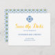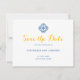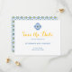 Alerte seus convidados sobre suas celebrações futuras com este Azulejo mediterrânico Watercolor Lemon Wedding Save the Date. Um elemento azulejo espanhol amarelo e azul na frente com tipografia divertida, mas limpa, num formato elegante, enquanto o dorso apresenta um padrão de azulejo vibrante e um limão que é indicativo das regiões da Andaluzia, Espanha e Costa Amalfi, Itália.