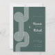 Faça seus próprios convites geométricos de casamento com este casamento geométrico totalmente personalizável, salve a modelo de data em um verde rico com texto verde claro e backer, a frente com um desenho geométrico de linhas. Todo texto e cores podem ser alterados na ferramenta design para ajustado do tema do seu casamento. A escolha perfeita para um casamento moderno, casamento na praia ou casamento outono.