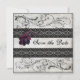 Cinzas negras e leves, decoradas com espirais florais, rendas negras e um rosa gótico: uma elegante suite de casamento - perfeita para o dia mais memorável da sua vida! Este design está disponível em Cartões salve a data e convites com envelopes, imã salve o dia e adesivos correspondentes, cartões de agradecimento, carimbos de postagem correspondentes e etiquetas de endereço de devolução. Como sempre, é perfeitamente personalizável com o texto da sua escolha!