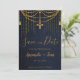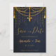 Bonito Blue Tradicional Twirls Dourados Casamento de Luxo Salve a Data. Dourado design tradicional num fundo texturizado azul, este casamento Salvar a data dá uma primeira impressão de excelente. Mande esses cartões bonito de anúncio de casamento para a família e amigos anunciarem o grande dia. Personalize estas belas cartões salve a data mudando os nomes da noiva e noiva e a data do casamento. Para mais personalizações, contacte-me em mypaperlove2021@gmail.com