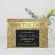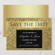 Comunique o seu dia especial com classe com o nosso convite de Save the Date preto e dourado brilhante moderno! Este design sofisticado e elegante é o prelúdio perfeito para o seu casamento de luxo. Atrai a atenção dos convidados com um toque de brilho e uma estética clássica. Faça do seu momento inesquecível algo ainda mais especial!