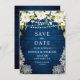 Reserve A Data Casamento de Madeira Azul Rosas Brancas Elegantes